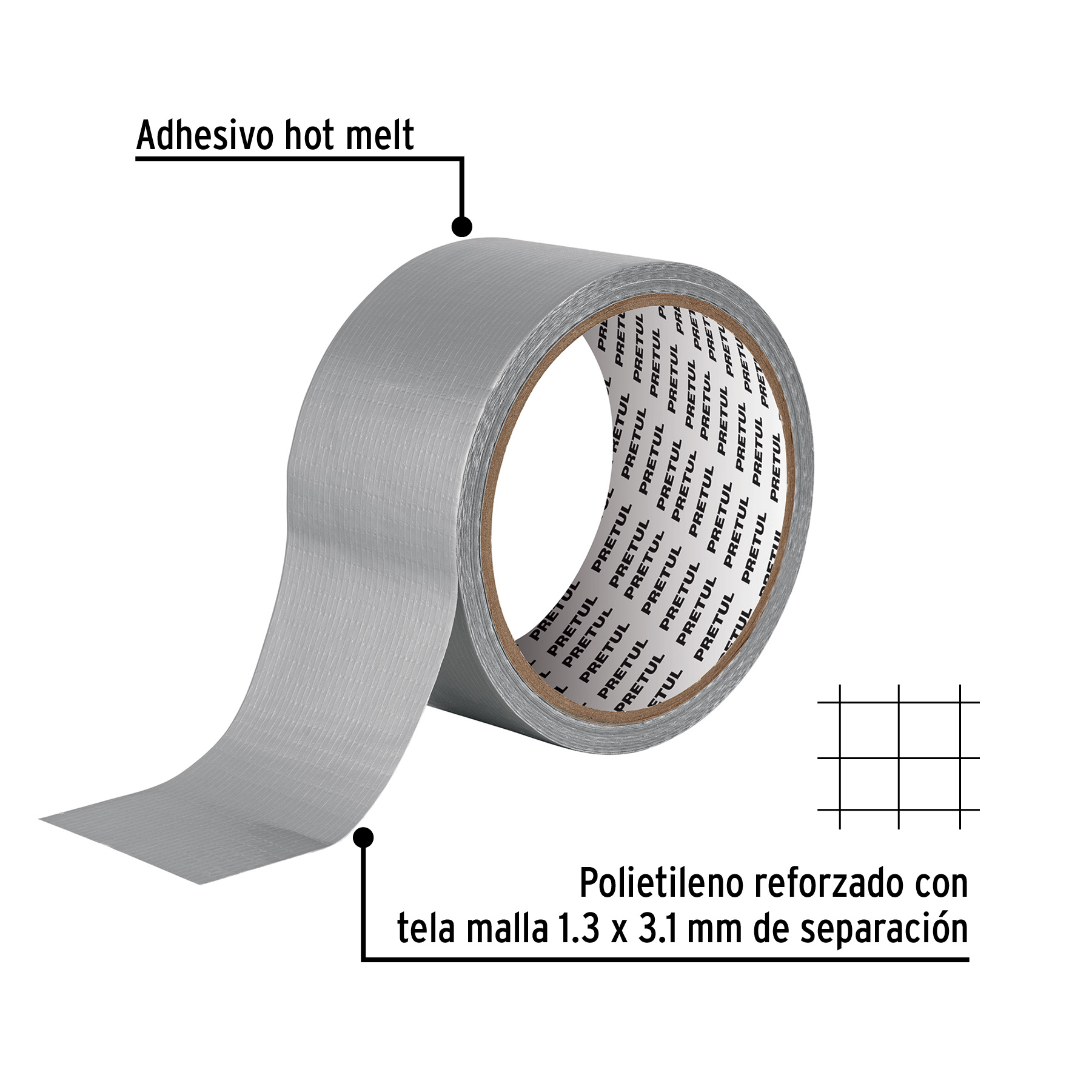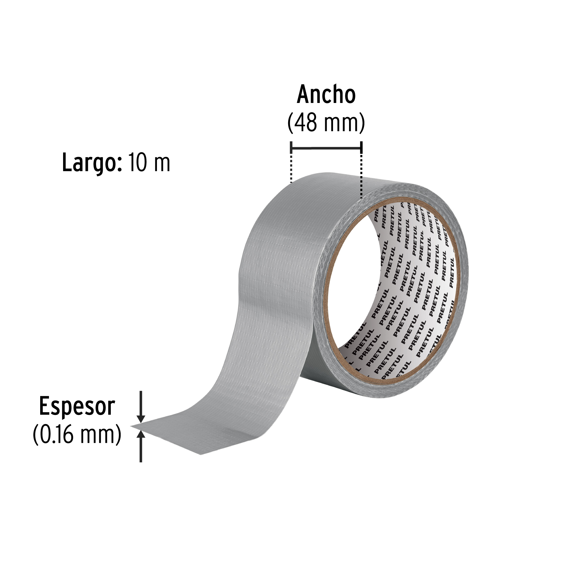 Cinta para ducto PRETUL de 10 m de largo y 48 mm de ancho, con espesor de 0.16 mm, ideal para reparaciones y fijaciones resistentes. Está fabricada en polietileno reforzado con malla de algodón, lo que le brinda mayor durabilidad. Cuenta con adhesivo hot melt que asegura una excelente adherencia en distintas superficies.